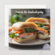 Esta es una imagen generada por IA. De alguna manera aprendí sobre el sándwich de Banh Mi, así que tuve que hacer un diseño para él. Pensé que sería bueno tener las lonchas de sándwich y un plato con una luz brillante.