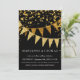 Sleek. Moderno. Moda. Glamour subestimada - con banderas brillantes en dos tonos de purpurina dorado con brillantes gargantas que caen confetti en varios tamaños y sombra de oro. Las brillantes estrellas brillantes de estallido espumoso resaltan el destello. Un diseño de texto de tipografía muy contemporáneo que no es tradicional. Es sencillo y corto. A sus invitados les dice: "¡Estamos lanzando a un fiesta y será el fiesta de toda una vida!" Para el novio y la novia elegante pero no tradicional. COLORES: chorro negro y oro, purpurinas dorados. Especialmente adecuado para bodas de otoño o invierno, Fiestas de Nochevieja, fiestas de cumpleaños y invitaciones de fiestas de aniversario.