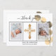 Añade 2 o 3 de tus propias fotos y una nota de agradecimiento. Un elegante fondo blanco con texto negro y marco. Decorada con un eucalipto dorado. El texto: Gracias en la parte delantera y sus nombres en la parte trasera están escritos con un elegante guión con letras a mano con guiones. Neutralidad de género.