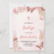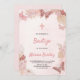 Baptism invitation with floral design and butterflies in pink hues on a soft white background. Text invites guests to a child's baptism ceremony.