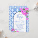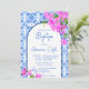 Invitación Baptismo Azulejos azules y elegante Bougainvillea