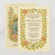 Una invitación al bautismo católico intemporal que incluye un reverente ilustracion vintage de un ángel guardián observando a un bebé dormido con el Espíritu Santo arriba. Rodeado de adornos florales azules y rosas y situado sobre un fondo de pergamino de marfil, la parte posterior coordinadora ofrece un amplio espacio para el texto personalizado dentro de un borde botánico ornamental. Ideal para celebrar el sagrado Sacramento del Bautismo en el espíritu de la devoción católica tradicional.