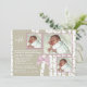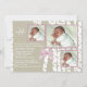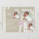 Árboles de aves Invitación a la Navidad acentuada en rosa con espacio para tres fotos de su bebé y mucho espacio para texto en la parte de atrás para texto adicional. El arco rosa bonito y los pajaritos blancos de papel también anuncian un nacimiento dulce.
