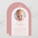 Invitación Baptismo Chica Arco Rosa Foto Guión Rosa Polvorien