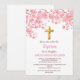 Invitación Baptismo Chica de la Cruz Floral Rosa