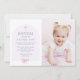 Invitación Baptismo chica Gracias con foto, tema de Bow rosad