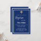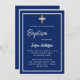 Moderna, elegante e invitada. Un fondo azul marino decorado con marcos blancos y una cruz dorada. Personalice y agregue un nombre y detalles. Texto blanco.