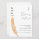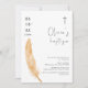Invitación Baptismo cruzado de plumas de acuarela neutra