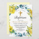 Celebra el bautismo de tu bebé con tus seres queridos cuando envías estas hermosas invitaciones amarillas de bautismo floral. Estas invitaciones de bautismo floral boho para un niño o una niña presentan flores amarillas de bonito con acentos azul oscuro. La parte trasera de la invitación al bautismo tiene un fondo amarillo suave con puntos de polka blancos. Personaliza con toda tu información para un toque súper personalizado.