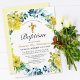 Invitación Baptismo de la Cruz de Oro Floral Amarillo