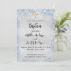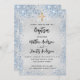 Un bautismo moderno y elegante, que celebra a dos bebés, gemelos. Fondo de color falso plateado decorado con un falso purpurina azul y una cruz dorada. Personalice y agregue nombres y detalles de la ceremonia. Letras de color negro.