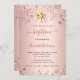 Invitación Baptismo estrellas de oro rosa chica elegante