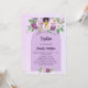 Un fondo violeta y lavanda acuático. Decorada con flores de color violeta y violeta y una cruz dorada. Personalización y nombre y detalles de la recepción.