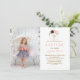 Invitación Baptismo fotográfico de cruz floral rosa de Borgoñ