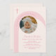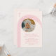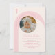 Moderno arco de boho rosa neutro de género con simple invitación cruzada de bautismo. Para cambiar la foto, los colores y las fuentes eligen editar este diseño más adelante para abrir opciones adicionales de personalización.