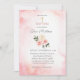 Invite a sus seres queridos a celebrar el día especial de su bebé con esta elegante invitación al bautismo, que incluye una impresionante cruz de oro y un suave acento floral rosado. Perfecto para una celebración tradicional y moderna, el diseño exuda gracia y belleza con detalles dorados y flores delicadas. Personalice con toda la información importante del evento para crear una invitación digna de conservarse que establezca el tono perfecto para el significativo hito religioso de su hija.