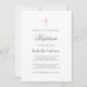 Invitación Baptismo simple de cruz rosa simple y elegante
