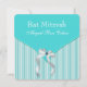 Invitaciones para Bar Mitzvah de rayas azules turquesa y blancas. Puede personalizar fácilmente esta bonita invitación de Bar Mitzvah azul turquesa simplemente agregando sus datos en el estilo de fuente y redacción de su elección.