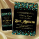 Invitación de Bat Mitzvah con confeti brillante azul turquesa y dorado. Esta hermosa invitación de Bat Mitzvah azul turquesa y dorada se personaliza fácilmente para su evento agregando sus detalles en el estilo de letra, color y redacción de su elección. Puede cambiar el color de fondo de esta hermosa invitación de Bat Mitzvah. Todos los diseños de invitaciones en Zazzle son gráficos impresos sin joyas reales, lazos, brillo, etc.