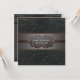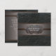 Hermosa invitación de Bar Mitzvah de cuero negro rústico impresa en marrón y negro.