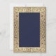 Esta elegante invitación floral azul para bar mitzvah con aire vintage tiene un marco dorado floral de decoraciones intrincadas de rosas silvestres sobre un fondo azul marino. Todo el texto se puede personalizar y tiene un color dorado similar al de las rosas doradas del marco. Sobre el texto, hay una estrella de David dorada. El nombre del niño está escrito en una elegante letra caligráfica.