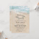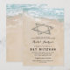 Invitaciones de fiesta de Bat Mitzvah con tema de playa con un fondo de isla tropical de verano, una playa de arena vintage con la estrella de David en la orilla, y una plantilla de mitzvah que es fácil de personalizar.