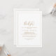 Esta minimalista invitación a la barbacoa de la ducha BabyQ es perfecta para una simple ducha en pareja. El moderno diseño romántico presenta una tipografía clásica en oro y blanco, acompañada de una caligrafía rústica y elegante con un estilo de letra a mano vintage. Personalizable de cualquier color. Mantenga el diseño simple y elegante, tal como está, o lo personaliza añadiendo sus propios gráficos y obras de arte. Esta invitación se puede usar para una ducha de bebé en pareja, revelaciones de género o un fiesta para conocer el recién nacido.