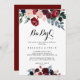 Esta invitación a la barbacoa con flores de la marina de Borgoña BabyQ es perfecta para una pareja rústica con ducha de bebé o para un bebé rociador. El diseño se compone de peonías color agua rosa, rubor, marina, azul y borgoña, rosas con follaje verde cuidadosamente ensamblados en elegantes ramos.