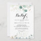 Esta rústica invitación a la barbacoa con flores de oro BabyQ es perfecta para una simple pareja con ducha de bebé o para un rociador de bebé. Este diseño artístico presenta una floración dorada a mano y eucaliptos de color agua, un follaje verde inspirador de la belleza natural.