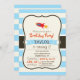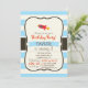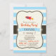 Invitación Barco espacial con cohetes rojos; franjas azules c