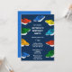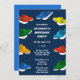 ¿Tener un fiesta con temática de hidropedales? Esta fiesta de cumpleaños personalizado invita a presentar ilustraciones de botes a pedales en colores brillantes contra un fondo azul marino. Las invitaciones están listas para personalizar con todos los detalles de su fiesta en letras en negrita y en blanco. El reverso es de un color azul intenso que coordina.