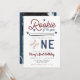 Esta invitación de novato del año para el primer cumpleaños incluye estrellas azules, fuentes rojas y gráficos con temas de béisbol con una opción de foto trasera. Esta invitación es la adición perfecta a tu evento de fiesta de primer cumpleaños con tema de béisbol.