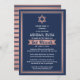 Ya sea que amigos y familia estén practicando el distanciamiento social o que simplemente vivan lejos, conéctense con ellos en línea con una ceremonia y celebración virtual del bat mitzvah. Esta elegante y moderna invitación incluye una redacción para un evento en línea de larga distancia a través de videoconferencia en internet y transmisión en vivo. Todo el texto es sencillo de personalizar, por lo que puede incluir cualquier información relacionada con el servicio, la lectura de Torah y el fiesta. La redacción de la recepción es fácil de personalizar a un desfile de automóviles, fiesta de traspatio u otro tipo de evento. (IMAGEN PLACEMENT TIP: Una forma sencilla de centrar una foto exactamente como se desea es recortarla antes de subirla al sitio web de Zazzle.) El diseño presenta un Relieve metalizado de oro rosa rosado Star of David, rayas azul marino y blanco y una elegante tipografía inspirada en el art deco. ¡Mazel Tov!