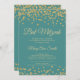 Diseño elegante de "Fiesta de Bat Mitzvah" con motivo de plantilla de invitación moderna con Purpurina Falsa dorada y Confeti Azul Turquesa, nombres personalizados y texto de fecha. Impresiona a tu familia y amigos con este diseño elegante y moderno. Fácil de usar y personalizar.