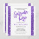 Moderna, simple y mínima raya de purpurina púrpura Invitación a Bat Mitzvah con divertido y divertido nombre de guión de broche de caligrafía audaz y elegante diseño de tipografía para una clásica celebración de mitzvah. Toda la redacción, los colores y las fuentes se pueden editar con la herramienta Diseño de plantillas. Elementos de coordinación y decoración disponibles en la tienda de diseño de pastas de uva de papel.
