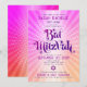 Estén orgullosos, alégrense y muestren este hito de su Bat Mitzvah favorita con esta divertida invitación personalizada boho retro! Tipografía divertida, trendy, negrita rosa oscuro y púrpura con tipografía sans serif moderna sobre un fondo de rayos gradientes de naranja claro y rosa con puntos blancos. En la parte posterior, una Estrella de David blanca sobre un fondo rosa oscuro y naranja brillante. Personalice el texto personalizado con el nombre de su Bat Mitzvah, nombre hebreo, fecha e información del lugar. Garantizado para agregar diversión elegante a su ocasión especial!