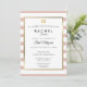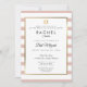 Con el oro rosa clásico y el fondo de rayas blancas, esta elegante invitación a Bat Mitzvah presenta un elegante Relieve metalizado de oro falso enmarcado en sus detalles enmarcados en la tipografía de moda. Diseñado por Thisisnotme©