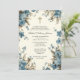 Con una hermosa invitación de Baptismo diseñada por un personalizado con flores azules y una hermosa madre bendita enmarcada en oro sosteniendo a Jesús en sus brazos. Se pueden modificar todo el texto y las fuentes.