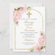Invitación Bautismo con flores rosadas Español