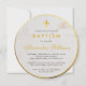 Cuenta con un marco redondo a ambos lados y una cruz dorada encima del texto, ambos en hoja de oro falsa. La ocasión "Bautismo" y el nombre están en dorado; el nombre está escrito en letra caligráfica.