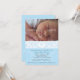 Un bautismo dulce o una invitación a bautizar que muestra a tu dulce niñito. Una banda blanca ornamentada sostiene un medallón que contiene un monograma de bebé. La figura del damasco se repite como una marca de agua contra el azul pastel en la parte delantera y trasera. Añadir información personalizada al panel azul claro. Se puede agregar texto adicional al reverso o simplemente eliminar el texto del marcador de posición para dejar el texto en blanco. Apropiado para un bautismo, bautizo o invitación de recién nacido. Disponible en colores alternativos con productos coincidentes.