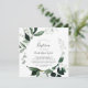 Esta invitación al bautismo cuadrado de vegetación esmeralda es perfecta para un bautismo de bebé boho. El diseño es elegante y rústico, con unas hojas de acuarela verde oscuro y un eucalipto con un toque bohemio moderno.