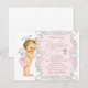 Invitaciones de bautismo de ángel de niñas con hermoso fondo de remolino rosa y plateado y adorable invitación de bautismo de bebé ángel. Esta linda invitación de bautismo de bebé ángel rosa se personaliza fácilmente para su evento agregando los detalles del evento, estilo de fuente, tamaño y color de la fuente, y redacción. Puede mover la cruz según sea necesario, así como el texto del bautismo.
