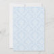Invitación de bautizo de damasco azul para niños con cruz de perla azul y escritura elegante sobre un bonito fondo de damasco azul bebé. Esta elegante invitación de bautizo de damasco azul se personaliza fácilmente para su evento simplemente agregando sus datos en el estilo de letra y color, y redacción de su elección.