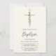 Esta elegante invitación floral al bautismo está decorada con una cruz de flores silvestres y tipografía de escritura. Personalizable fácil. Acuarela original © Michele Davies.