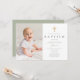 Invitación al bautismo de foto de un niño religioso verde sabio moderno.