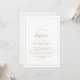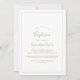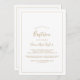 Esta minimalista invitación al bautismo de oro es perfecta para un simple bautismo de bebé. El moderno diseño romántico presenta una tipografía clásica en oro y blanco, acompañada de una caligrafía rústica y elegante con un estilo de letra a mano vintage. Personalizable de cualquier color. Mantenga el diseño simple y elegante, tal como está, o lo personaliza añadiendo sus propios gráficos y obras de arte.