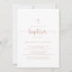 Esta subió invitación al bautismo minimalista de caligrafía dorada es perfecta para un bautizo rústico o bautizo. El diseño, sencillo y elegante, presenta una tipografía de escritura clásica y elegante en oro y blanco rosa.