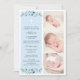 Esta invitación de bautismo con flores azules en español para tiene por 4 fotos de su bebé y Hersos ramos de flores de acuarela con vegetación botánica. El frente incluye 3 fotos, una caligrafía elegante y una simple cruz cristiana y los detalles de su evento escritos en una tipografía serif vintage en un súper elegante de gris. En la parte de atrás espacio para otra foto, que está enmarcada más flores de acuarela, vegetación botánica y una cruz, así como un versículo de la biblia, que puedes cambiar a lo que prefieras. El invitación puede enmarcarse de su y guardarse como un recuerdo especial de la muerte. Diseñando el polvo azul para el niño, asegúrese de explorar los otros artículos de la suite para crear un estilo elegante y coordinado para su bautizo. Si, para personalizar esta invitación o desea que cree adicional, comuníquese conmigo en admin@albamarie.com. ¡Estaré de ayuda! Para cambiar las fuentes o los cambios de la posición de los cuadros de texto, desplácese más allá de las palabras de texto y haga clic en "Editar usando la herramienta de diseño". Si ayuda adicional para ajustar esta plantilla, Aproveche el servicio gratuito de Zazzle en https://www.zazzle.com/live o comuníquese un del sistema de mensajería de Zazzle. Tenga en cuenta los imprime y los envía desde sus instalaciones de producción, por lo que es algún con su pedido, comuníquese con su servicio de atención al cliente al 1-888-892-9953 o https:// www.zazzle.com/about/ask. Esta invitación al bautismo español azul, floral y multifoto para los niños presenta hermosos ramos de flores acuarelas con vegetación botánica. El frente incluye 3 fotos, un guión elegante de caligrafía y una cruz cristiana simple y los detalles de tu evento escritos en una tipografía serif vintage en un tono súper moda de gris carbón. En la parte trasera hay espacio para otra foto enmarcada por flores acuarelas, vegetación botánica y cruz, así como un verso de la biblia, que se puede cambiar a lo que se prefiera. La parte trasera de la invitación podría enmarcarse después de su evento y mantenerse como un recuerdo especial de la ocasión. Diseñado como parte de mi elegante colección en polvo azul para bebés y niños, asegúrese de navegar por los otros artículos de la suite para crear una moda, una búsqueda coordinada para su bautizo. Si necesita ayuda para personalizar esta invitación o me gustaría que creara elementos adicionales que coincidan, por favor contáctame (Dawn) en admin@albamarie.com. ¡Me gustaría ayudar!