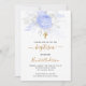 Invitación Bautismo flor azul claro niño elegante blanco